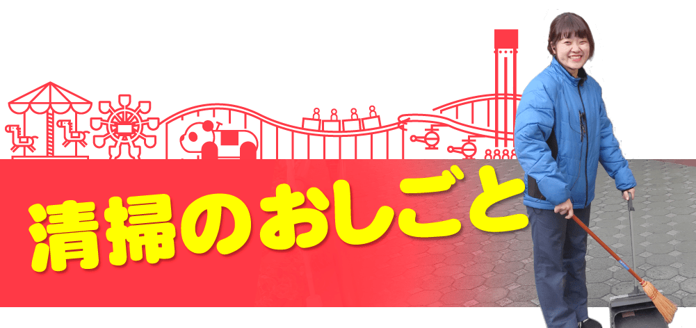 遊園地はみんなが心から楽しもうとしてくる場所。園内のどの場所でもいい思い出になってほしいから、キレイを保つことってとっても大切な事。その重要なミッションは園内清掃スタッフにかかってるよ。