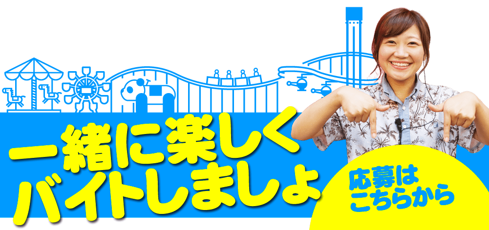 職種詳細 | ①入園ゲートスタッフ ②アトラクションスタッフ ③ショップスタッフ ④清掃スタッフ |