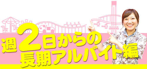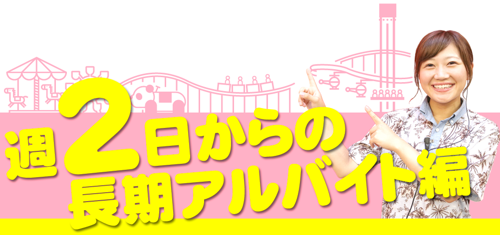 | 職種詳細 | ①入園ゲートスタッフ ②アトラクションスタッフ ③ショップスタッフ ④清掃スタッフ |